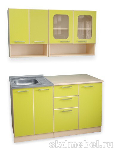 Кухонный гарнитур "Ирбея 1.2" выпускается секциями, с накладной мойкой.