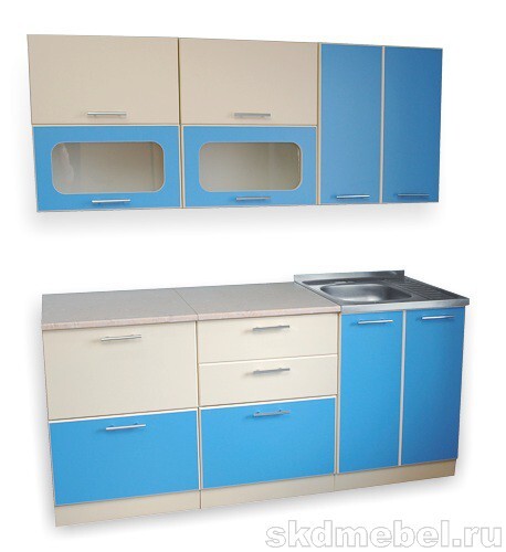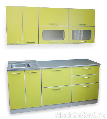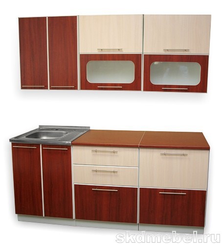 Кухонный гарнитур "Ирбея 1.2" выпускается секциями, с накладной мойкой.