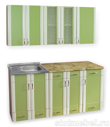 Кухонный гарнитур "Ирбея 2,6" выпускается секциями, с накладной мойкой.