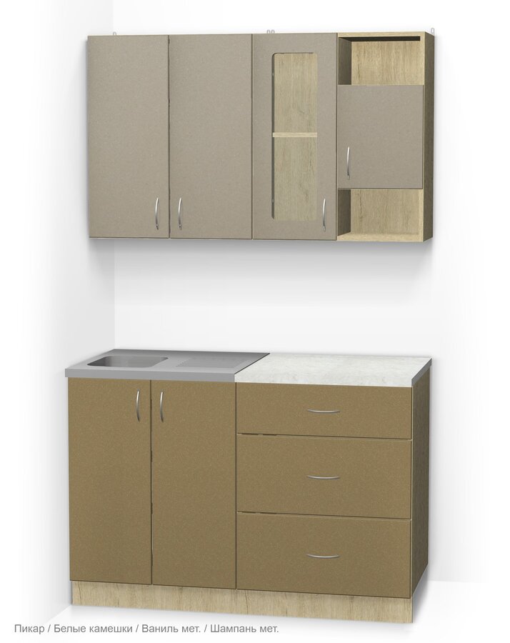 Кухонный гарнитур "Ирбея 4.2" МДФ выпускается секциями, с накладной мойкой.