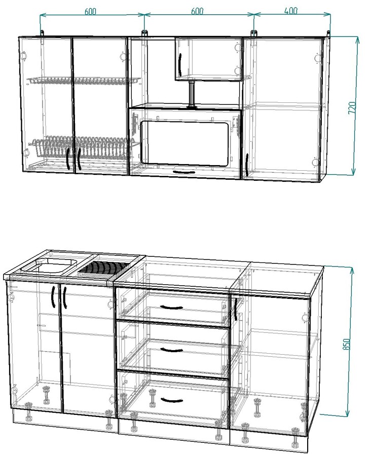 Возможно изготовление с цельной столешницей и врезной мойкой. В таком случае цена увеличивается на 5%.