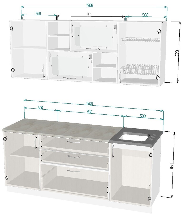 Возможно изготовление с цельной столешницей и врезной мойкой. В таком случае цена увеличивается на 5%.