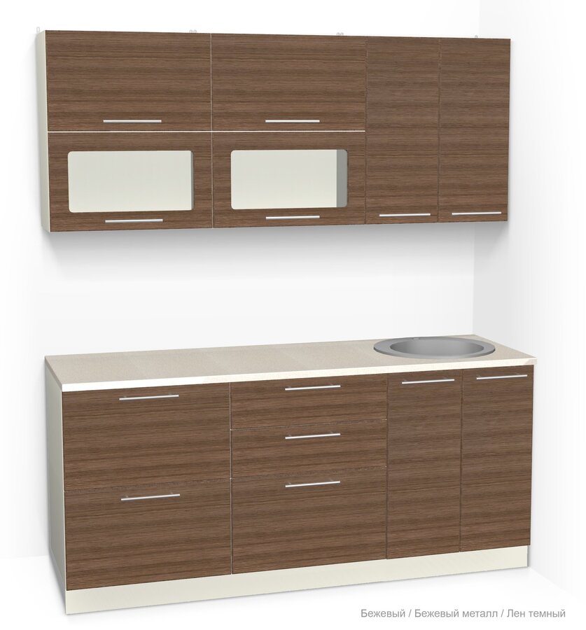 Возможно изготовление с цельной столешницей и врезной мойкой. В таком случае цена увеличивается на 3%.Стоимость Кухонного гарнитура "Ирбея" с фасадами МДФ зависит от категории выбранной расцветки.Размеры (Д): 1800