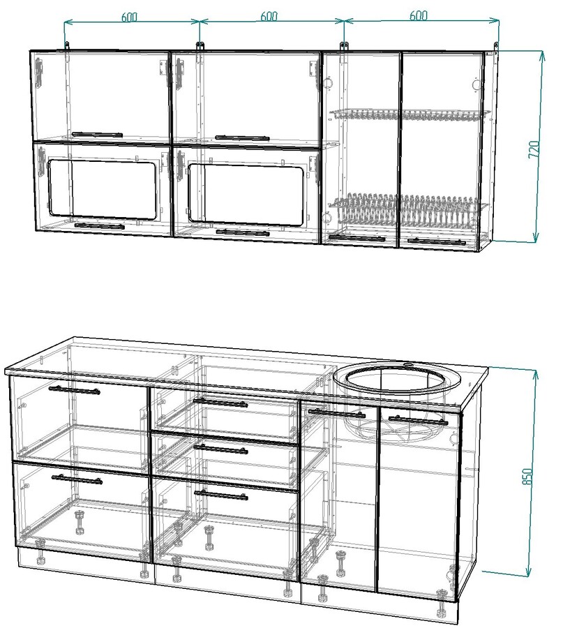 Размеры по секциям (Д): 600/600/600