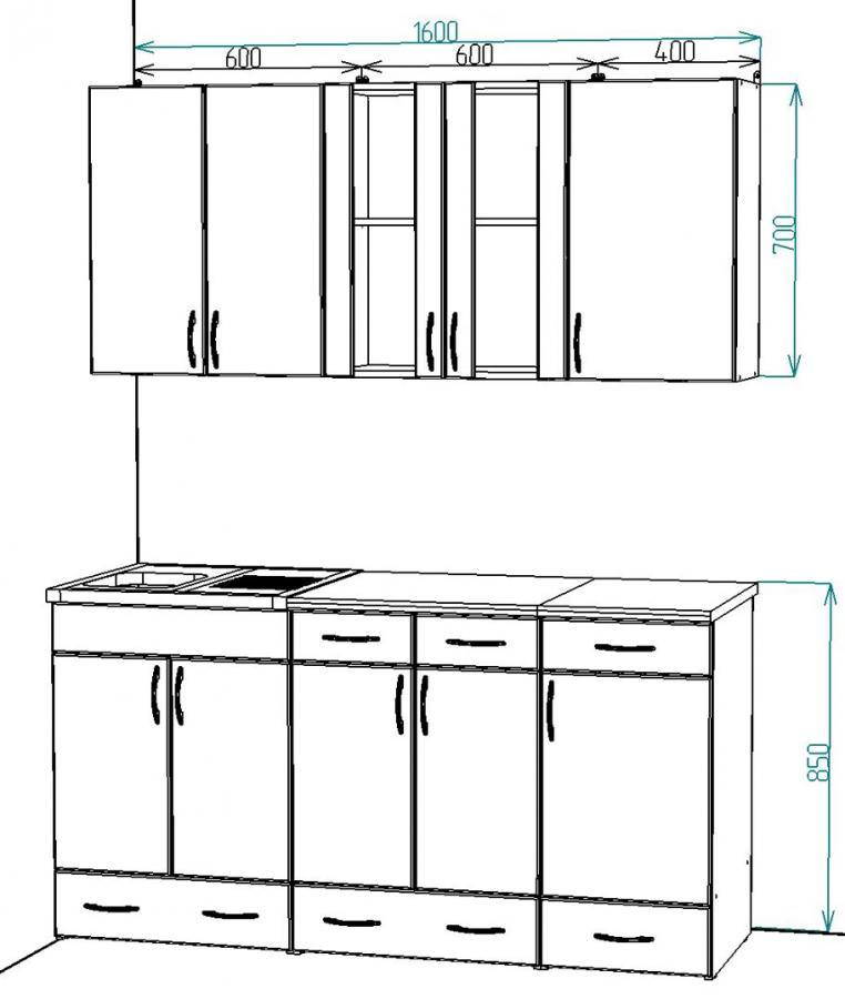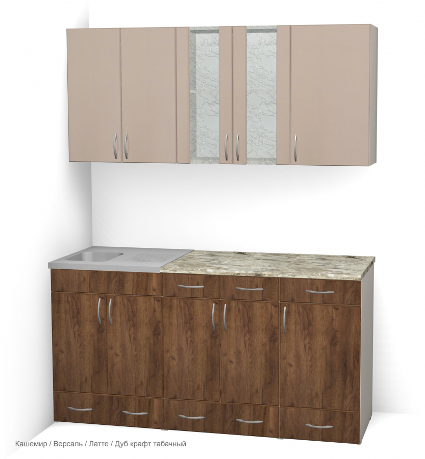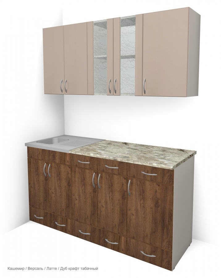 Кухонный гарнитур выпускается секциями, с накладной мойкой.