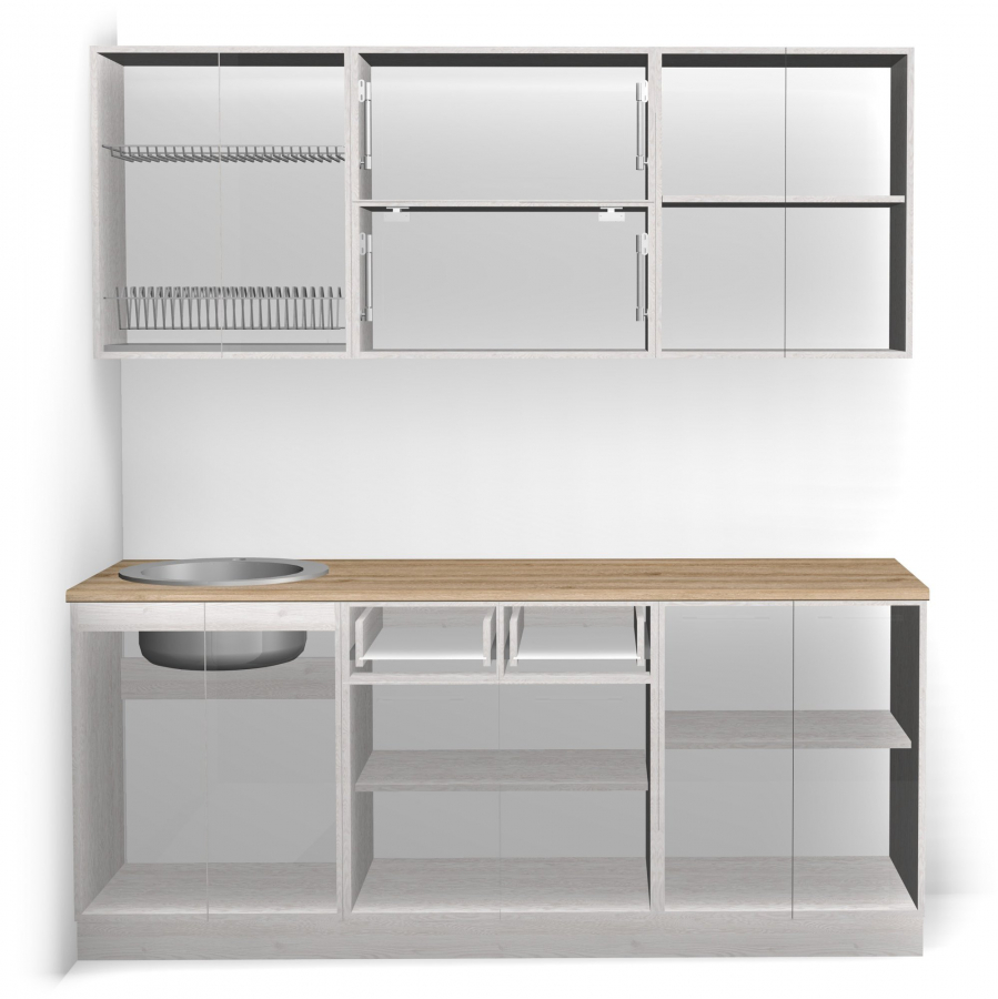 Столешница поставляется без выреза под мойку, что дает возможность выбора компоновки.