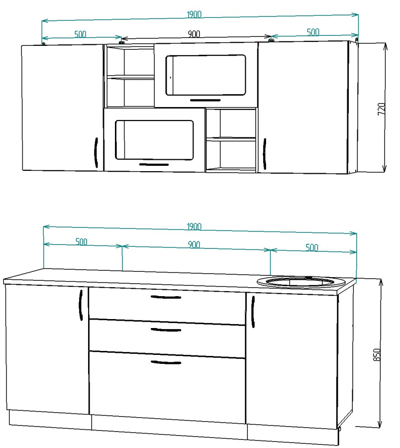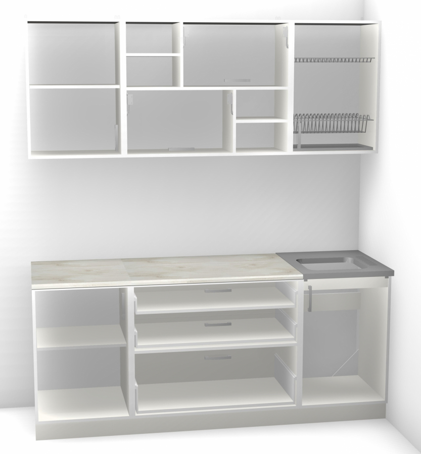 Возможно изготовление с цельной столешницей и врезной мойкой. В таком случае цена увеличивается на 5%.