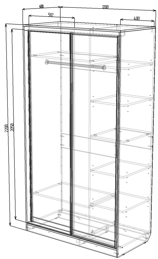 Главная/ Мебель Ирбея / Корпусная мебель / Спальни / Шкаф купе стандарт 1200 с зеркалом