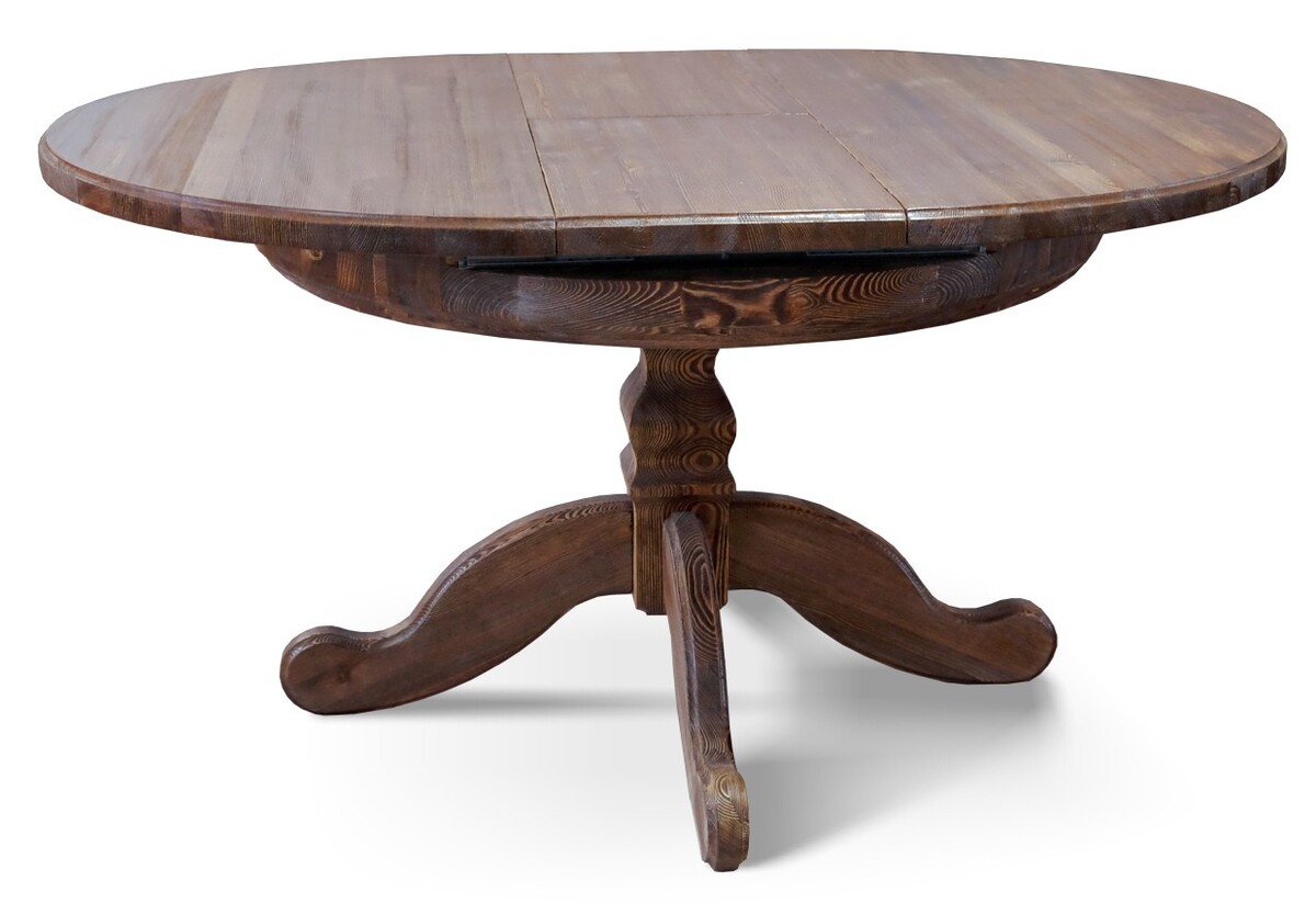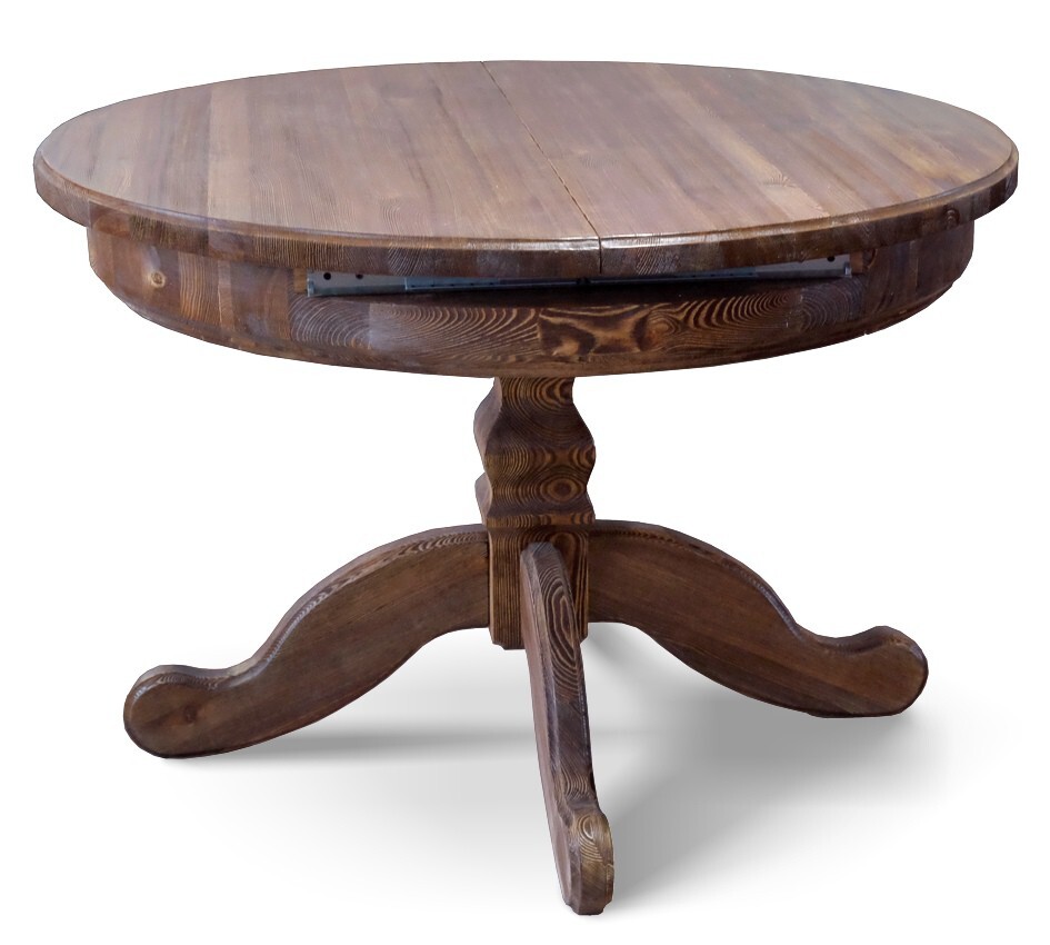 Главная/ Мебель Ирбея / Мебель из дерева / Столы / Стол обеденный Ирбея круглый раздвижной (D=115) (массив сосны, старение)