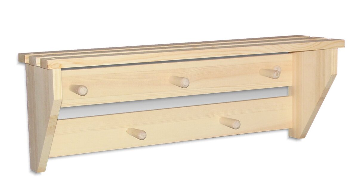 Главная/ Мебель Ирбея / Мебель из дерева / Вешалки, полочки / Вешалка Ирбея с полочкой 5-ти рожковая №4М (массив сосны шлифованный)