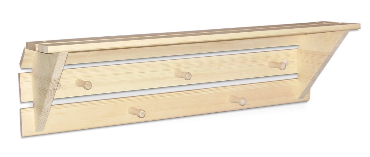 Главная/ Мебель Ирбея / Мебель из дерева / Вешалки, полочки / Вешалка Ирбея с полочкой 7-ми рожковая №16М (массив сосны шлифованный)