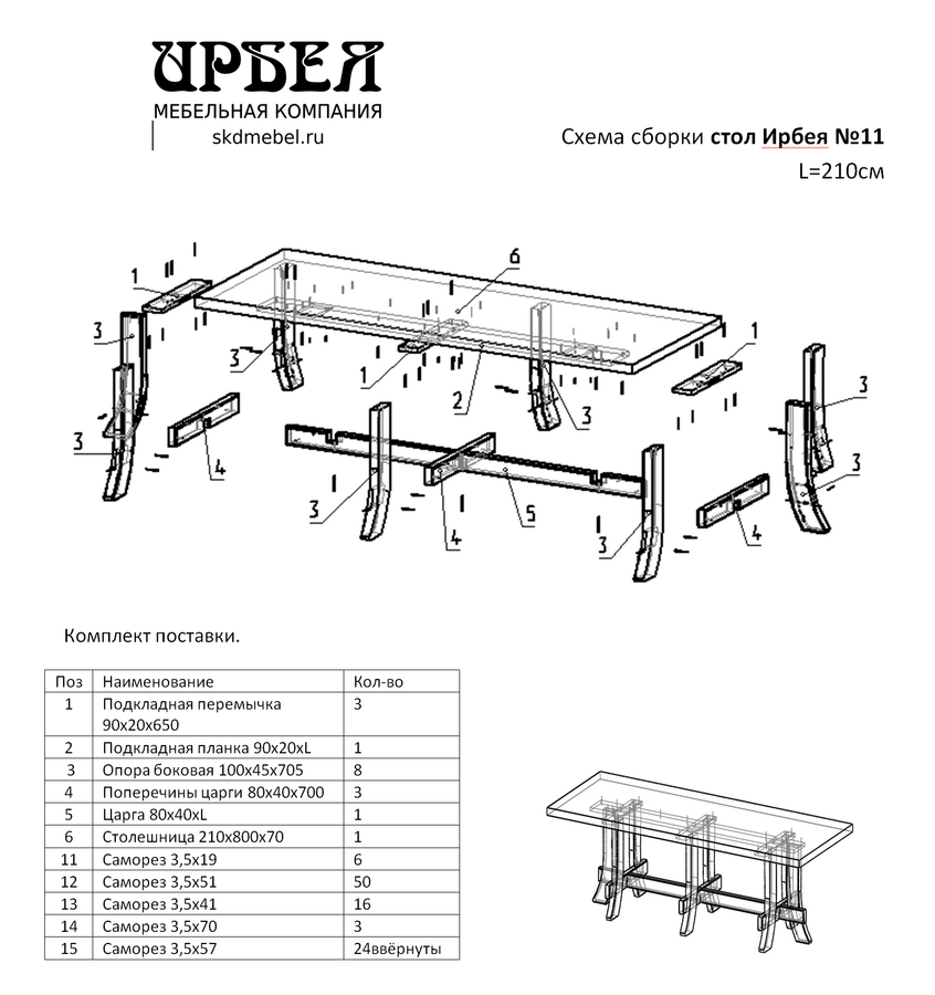 Главная/ Мебель Ирбея / Мебель из дерева / Комплект Ирбея №11 / Стол Ирбея №11 210*80 на 3-х опорах (массив сосны, старение)